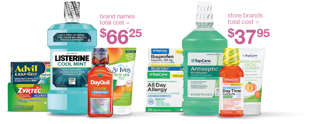 As you walk through our store, or check out our ads, keep an eye out for the Swap & Save logo (and Orrin!) . Our everyday private label products, such as TopCare and Premier Value, offer alternatives to national brands at WAY better prices. You can find TopCare and Premier Value products (and other value brands, too!) in our over-the-counter medications, personal care products, and beauty supplies. Plus...more to come!